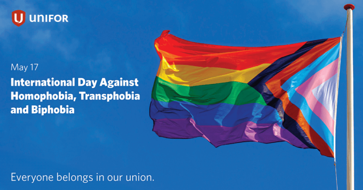 In times of uncertainty, solidarity is our greatest strength. On this International Day Against Homophobia, Transphobia, and Biphobia, Unifor stands with queer and trans workers to build a more inclusive, just, and united Canada.