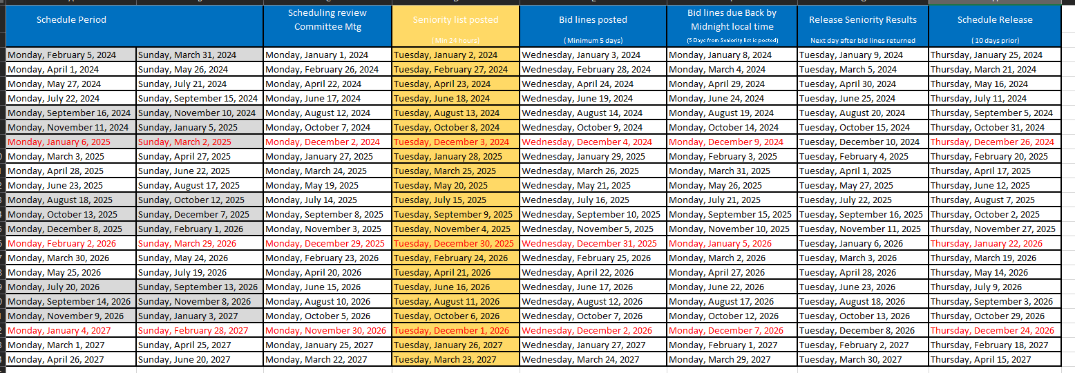 Airports - Scheduling Calendar Dates